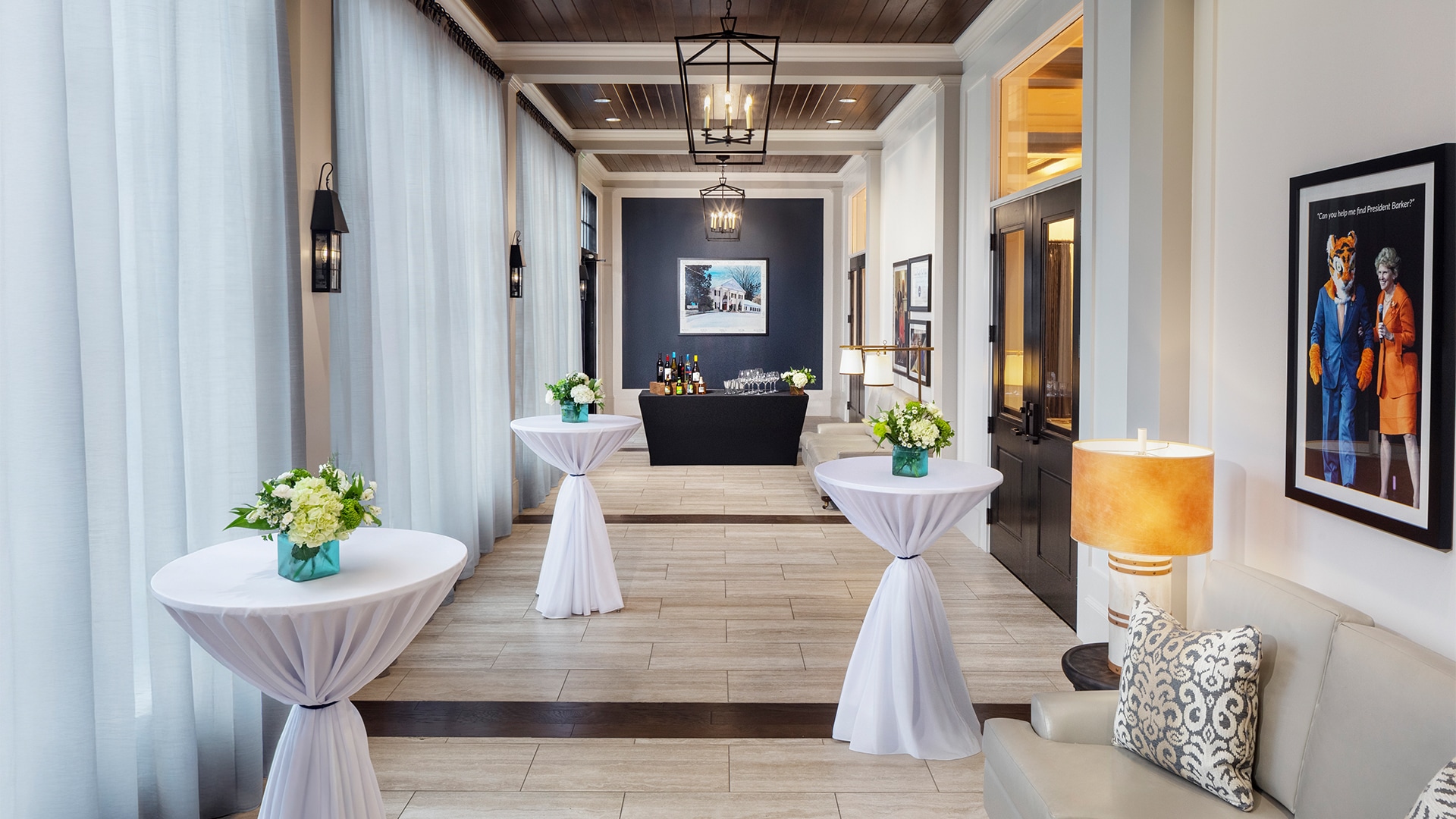 An inviting foyer where conversations flow easily—ideal for welcoming guests or mingling over cocktails, enhanced by high-speed Wi-Fi and the convenience of overnight stays just steps away.
