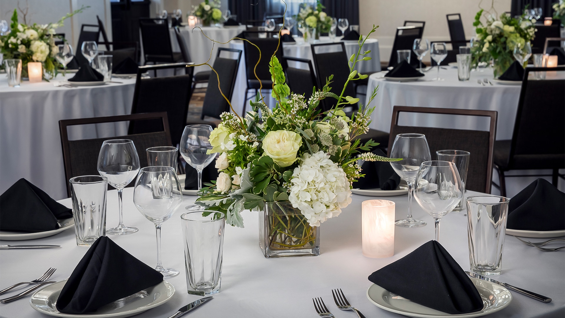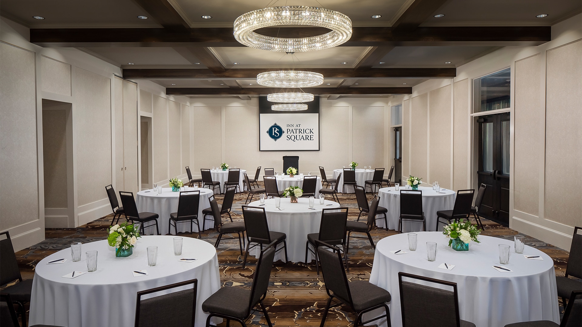 An elegant indoor setting that adapts with ease, offering a refined backdrop for weddings, meetings, or celebrations—complete with modern amenities and convenient access to boutique guest rooms and suites.