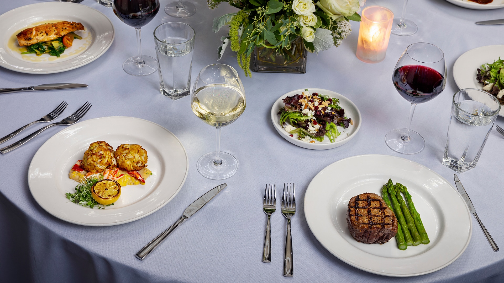 Treat your guests to award-winning cuisine from next-door neighbor Rick Erwin’s Clemson. From steakhouse classics like filet mignon to coastal seafood and chef-driven small plates, every menu pairs Southern flavor with refined presentation for memorable occasions.